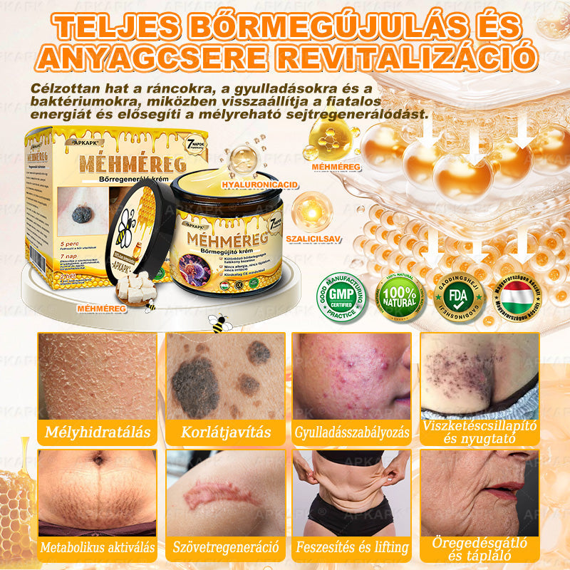 Magyar bőrgyógyászok által klinikailag tesztelve az 𝐀𝐏𝐊𝐀𝐏𝐊® méhméreges bőrregeneráló krém már 7 napon belül segíthet csökkenteni a szárazságot, a gyulladást, a viszketést és az öregedés látható jeleit.